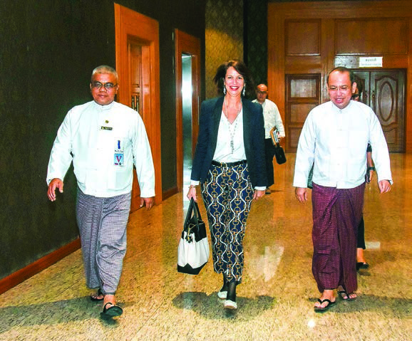 Ms Christine Schraner Burgener, who took a flight from Thailand, was welcomed by Director-General U Chan Aye from the International Organizations and Economic Department under the Ministry of Foreign Affairs and officials at the Nay Pyi Taw International Airport.