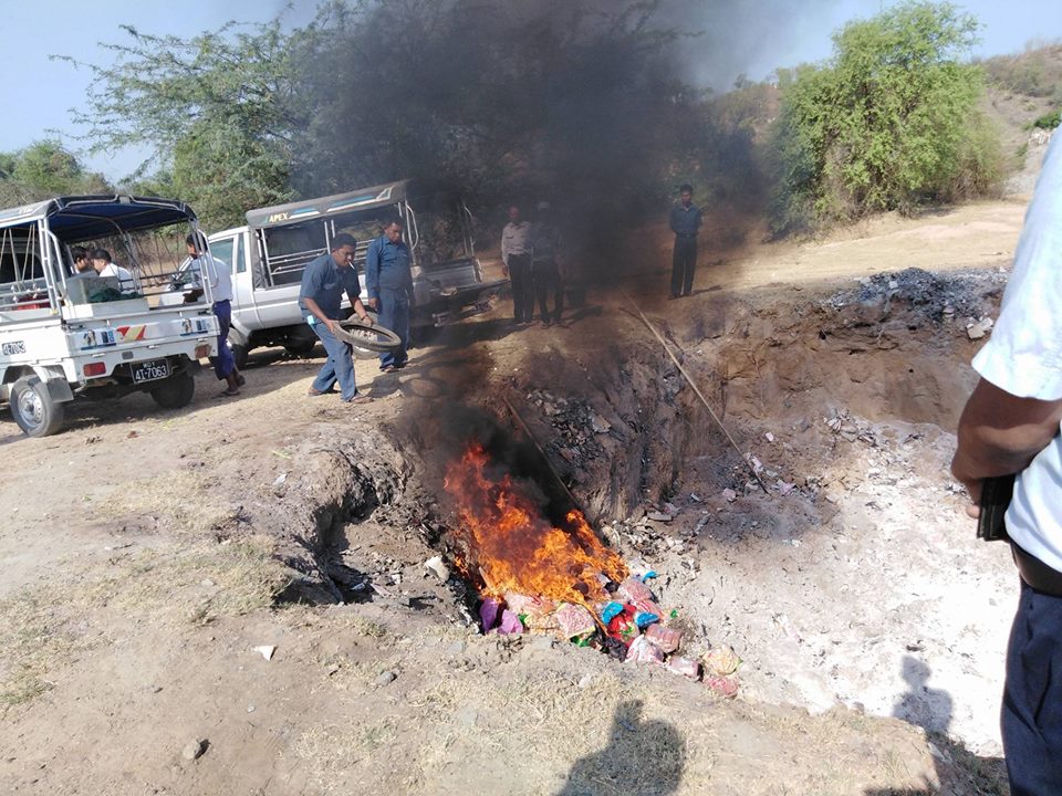 They incinerated the confiscated sea food worth more than Ks. 1.2 million after examining that sea foods are harmful to consumers.—Tun Tun Naing (IPRD)