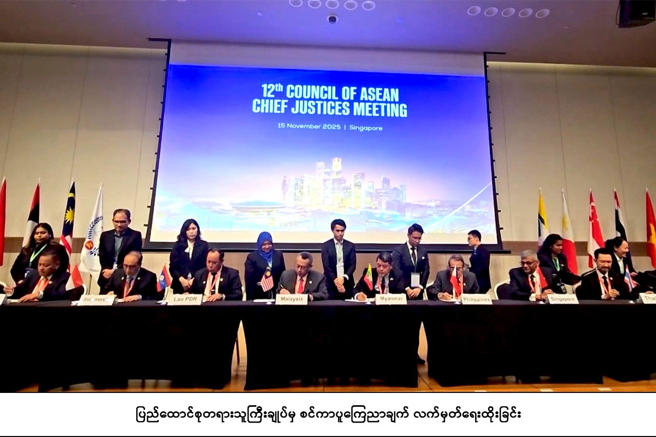 A Myanmar delegation, led by the Union Chief Justice, U Tha Htay, attended the 12th Meeting of the Council of ASEAN Chief Justices in Singapore, from 13 to 15 November 2025, at the invitation of the Chief Justice of Singapore, The Hon Sundaresh Menon.
