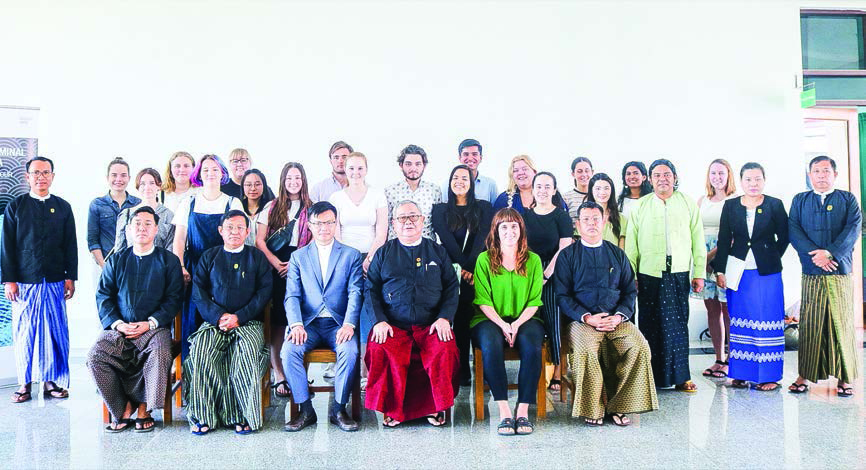 U Kyaw San, member of the Constitutional Tribunal of the Union, received a delegation from Australia’s Monash University led by Senior Lecturer Dr Lennon Yao Chung Chang and with 19 university students in Nay Pyi Taw yesterday.