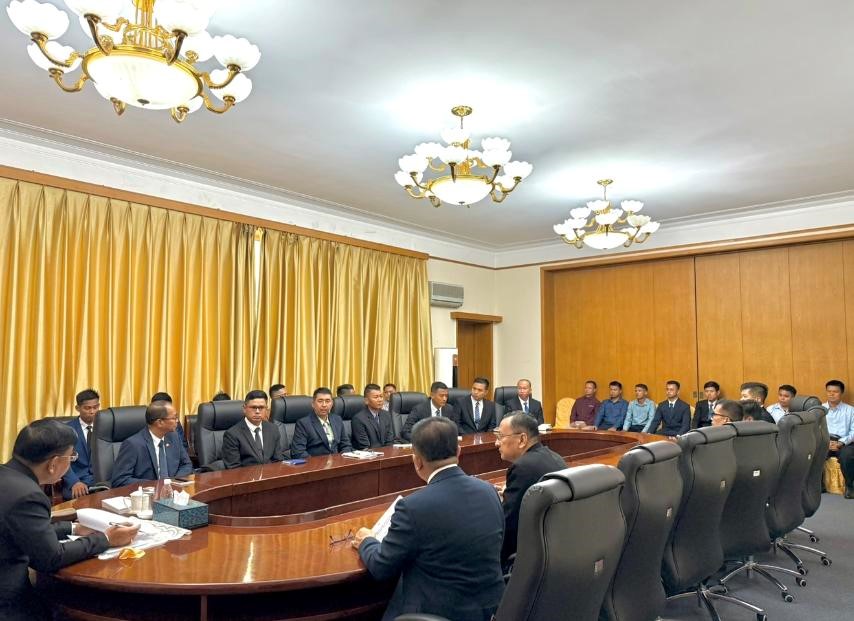 On the morning of 20 September, the Union minister and delegation met staff and families of the Myanmar Embassy and the Myanmar military attachés (Army, Navy, Air) office, as well as students attending training in Beijing, at the Myanmar Embassy. The Union minister explained the current situation of national development and presented gifts.