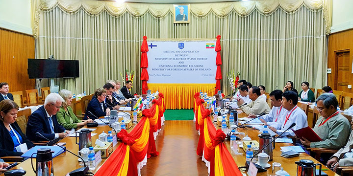 Union Minister for Electricity and Energy, U Win Khaing, met separately with Ms Nina Irmeli Vaskunlahti, Finland’s Under-Secretary of State for External Economic Relations, and officials from the US-ASEAN Business Council at his ministry yesterday.