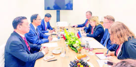 On 19 June, the Union minister received Russian Health Minister Mr Mikhail Murashko, and exchanged views on the matters contained in MoU between the two ministries signed during the visit of the Head of the State in March 2025 such as human resource development in health sectors, exchange visit for medical professionals between tow countries and training, cooperation in upgrading Taunggyi Sao San Tun Hospital, plans to sign MoU to import Russian-made medicines and medical supplies, further cooperation in radionuclide treatment and cancer treatment activities.
