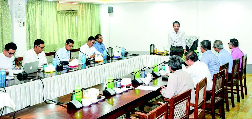 Chairman of Myanmar Narrative Think Tank U Ko Ko and officials clarified preparations to hold the forum under the title of Challenges and Opportunities that Myanmar will face in the multi-polar world beyond 2025. — MNA/TTA