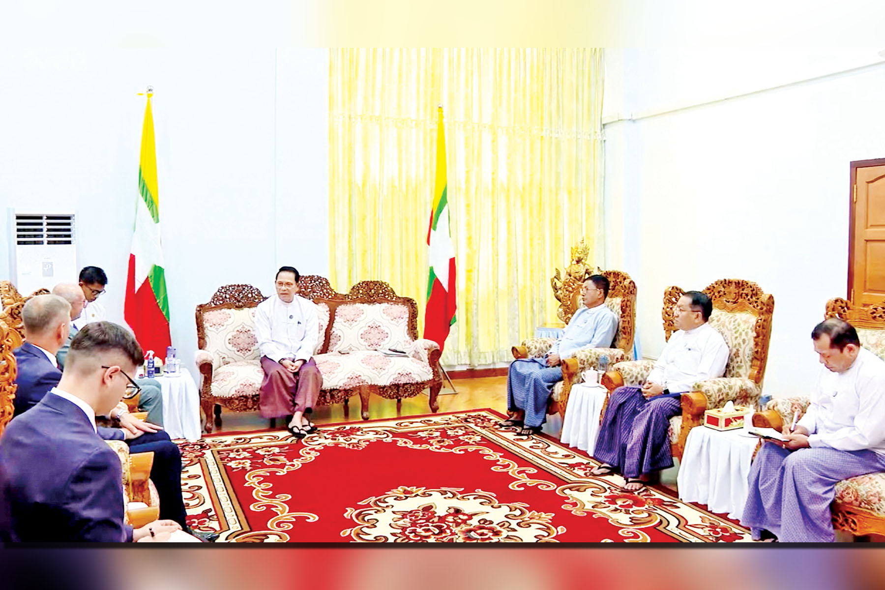 UNION Minister for Information U Maung Maung Ohn received the Belarusian delegation led by Belarusian musician-cum-vocal­ist Mr Vladimir Sukolinsky and Vice-Chair of the Myanmar-Rus­sia Friendship Association Mr Alexander Ostrovsky in Nay Pyi Taw yesterday.