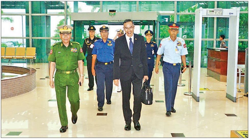 Union Minister for Defence Lt-Gen Sein Win and party on Wednesday left from the Yangon International Airport for Bangkok to attend 13th ASEAN Defence Ministers’ Meeting in Bangkok, Thailand.—MNA (Translated by Kyaw Zin Tun)