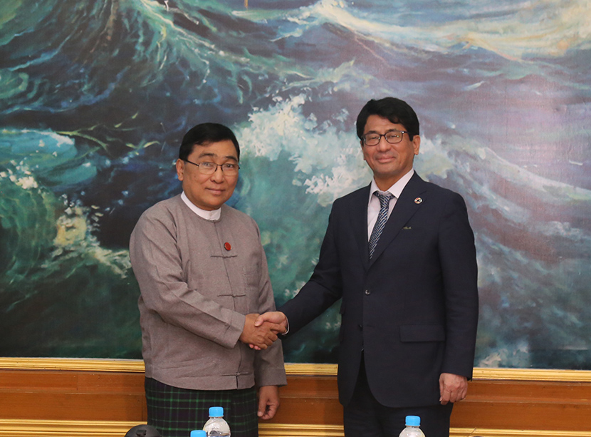 Union Minister for Social Welfare, Relief and Resettlement Dr Win Myat Aye received Mr Atsushi Koresawa, the Director for UN-Habitat Regional Office for Asia and the Pacific, and party at the former’s office in Nay Pyi Taw yesterday afternoon.