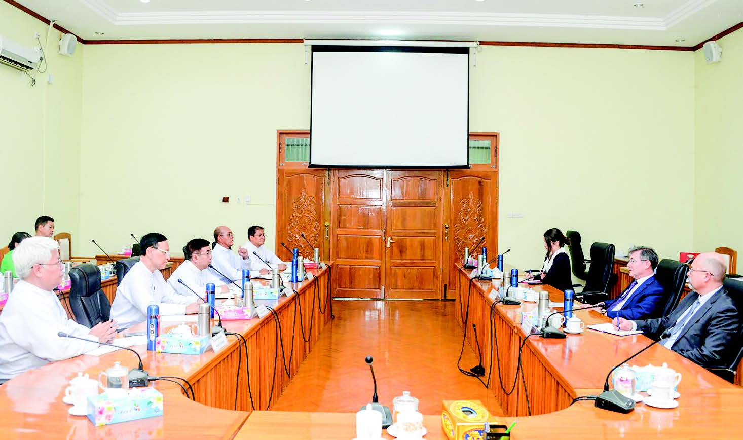 Union Minister for Education U Nyunt Pe received Mr Iskander Azizov, Russian Ambassador to Myanmar, and the delegation at the meeting hall of the Ministry of Education in Nay Pyi Taw yesterday.