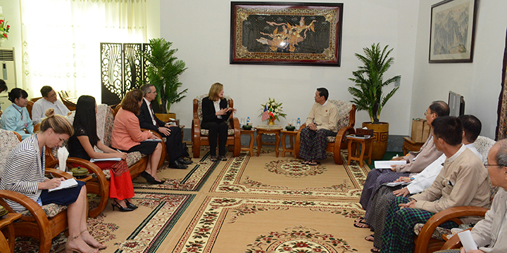 Union Minister for Education Dr Myo Thein Gyi received the United States of America’s Assistant Secretary of State for Educational and Cultural Affairs Ms Marie Royce at the guest hall of Yangon University of Foreign Languages in Yangon yesterday.