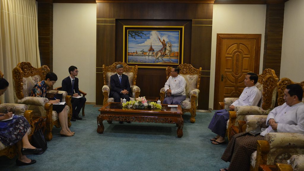 U Kyaw Tin, Union Minister for International Cooperation, received Mr Chen Hai, Ambassador Extraordinary and Plenipotentiary of the People’s Republic of China to the Republic of the Union of Myanmar, on 25 June 2019 at 3pm at the Ministry of International Cooperation, Nay Pyi Taw.
