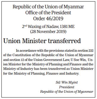 Announcement on List of Individuals Elected as Pyithu Hluttaw Representatives