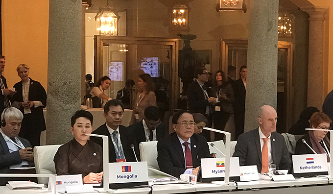The Union Minister delivered a statement at the Plenary Session of the ASEM 14th Foreign Ministers’ Meeting held on 16 December 2019 under the theme “Revitalizing the multilateral system-advancing the ASEM partnership on global issues”. In his statement, the Union Minister highlighted the vital role of ASEM in promoting the relations between Asia and Europe at the time of rapid global change, the role of multilateralism in finding solutions to the global challenges including climate change and the national efforts of Myanmar for adaptation and mitigation of the effects of climate change. He also stressed the need to strengthen the effectiveness and independence of the United Nations and to ensure that response of the multilateral institutions match with the priorities and expectations of the member States concerned.