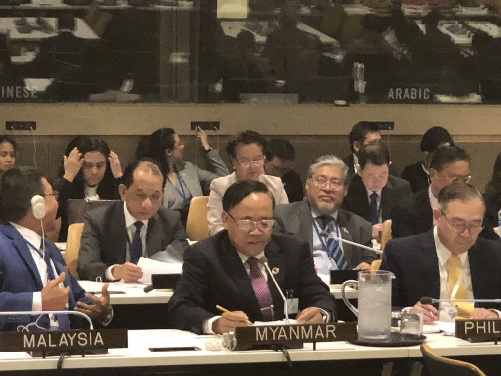 The Alternate Leader of Myanmar Delegation to the 74th UNGA and Union Minister for International Cooperation U Kyaw Tin apprised the United Nations Secretary General and ASEAN Foreign Ministers on Myanmar’s cooperation with ASEAN in addressing the issue of Rakhine at the ASEAN-UN Ministerial Meeting (AUMM) held on 28 September 2019 at the United Nations Headquarters, New York. The President of the seventy-fourth session of the United Nations General Assembly, Chef de Cabinet to the Secretary-General and UN high-level officials also attended the meeting.