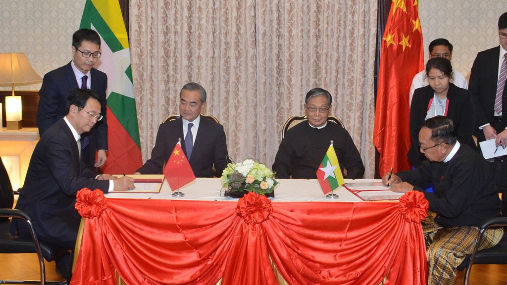 Before the dinner, Union Minister U Han Zaw and Vice Chairman of the International Development Cooperation Agency Mr Deng Boqing signed an MoU to donate 1000 prefabricated homes for Rakhine State by China and exchanged the documents in the presence of Union Minister U Kyaw Tint Swe and State Councilor and Minister of Foreign Affairs of People’s Republic of China Mr Wang Yi.