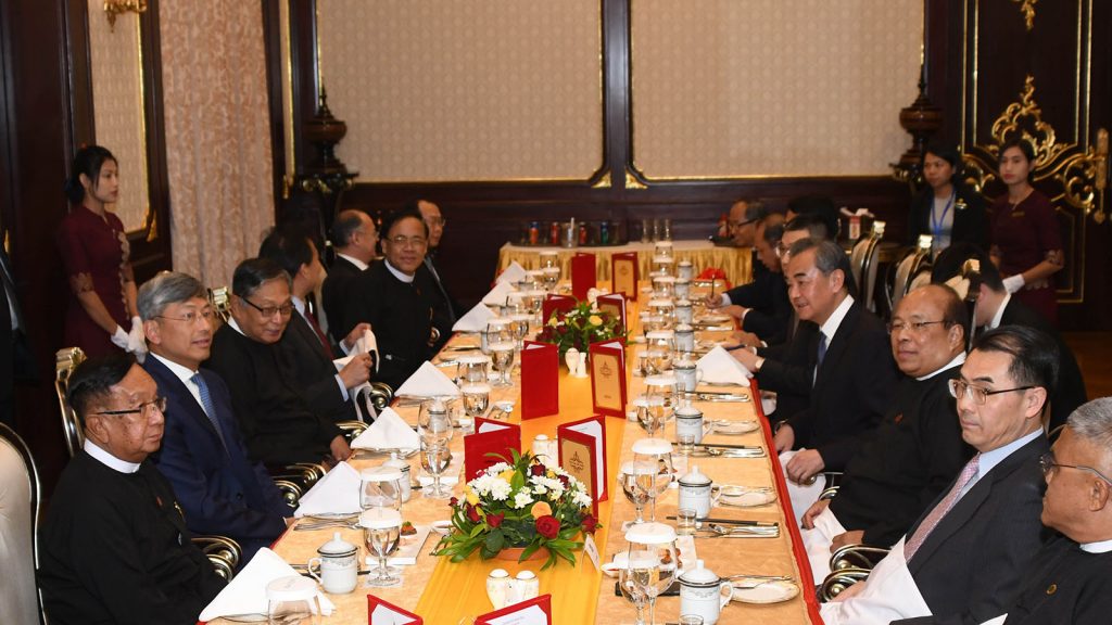 Then, Union Minister U Kyaw Tint Swe hosted a dinner to the delegation led by State Councilor and Minister of Foreign Affairs Mr Wang Yi. —MNA (Translated by TMT)