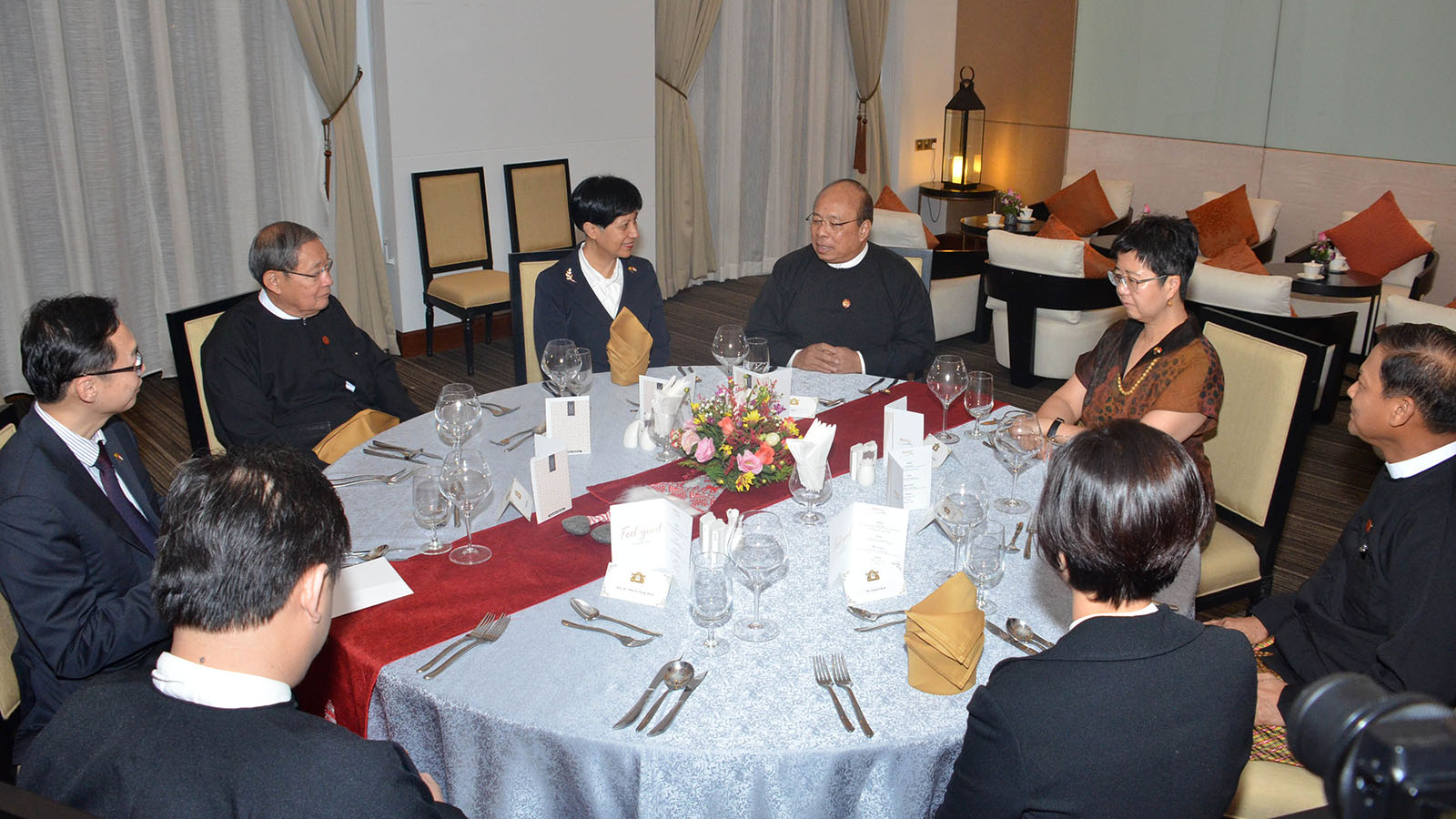 Union Minister for the Ministry of Investment and Foreign Economic Relation U Thaung Tun hosted a dinner for Minister in the Prime Minister’s Office and Second Minister for Education and Finance of the Republic of Singapore, Ms Indranee Rajah at M. Gallery by Sofitel Hotel, Nay Pyi Taw, yesterday evening.
