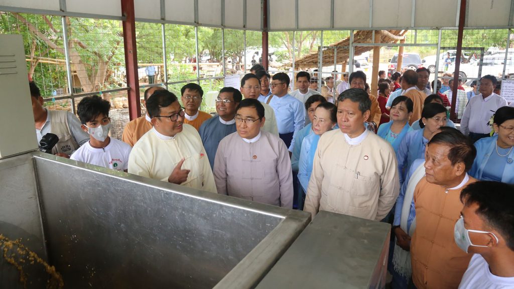 The event was attended by Union Minister for Education Dr. Myo Thein Gyi, Union Minister for Social Welfare, Relief and Resettlement Dr. Win Myat Aye, Mandalay Region Chief Minister Dr Zaw Myint Maung, Deputy Minister U Soe Aung, regional ministers, Hluttaw representatives, chairman of Degradation of Parentless Children Association (Myanmar) and officials from CSOs. They then observed the soy bean grinding mill donated by U Soe Thein and Daw Sin Nu (Nadiwah Company) to the Shwe Parami Soy Milk Nutrition Foundation and then an official-concerned explained about the process of soy bean production at the mill.