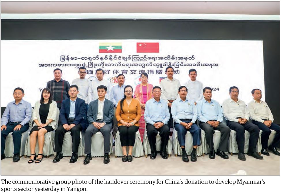 Union Minister for Sports and Youth Affairs U Min Thein Zan, attended a donation cer­emony held at the National Indoor Stadium 1, Thuwunna, Yangon, yesterday. The event, organized to strengthen Myan­mar-China relations, focused on the development of the sports sector. The Chinese Embassy provided the dona­tions as part of their ongoing support for Myanmar’s sports development.