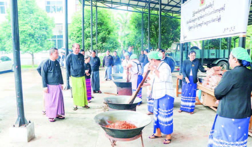 Fried chilli, fried fish, sa­chets of Nan Myaing coffee mix, instant noodle packs, pickled tea leave salad, fish-paste, dried salty peanut, and soya bean paste and K5 million will be transported to Nay Pyi Taw Command for the frontline Tatmadaw members and security forces.