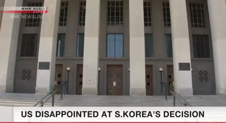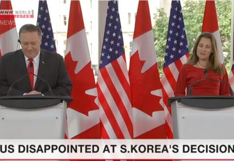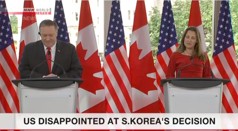 Speaking to reporters in Canada, US Secretary of State Mike Pompeo also expressed disappointment at South Korea's decision.
