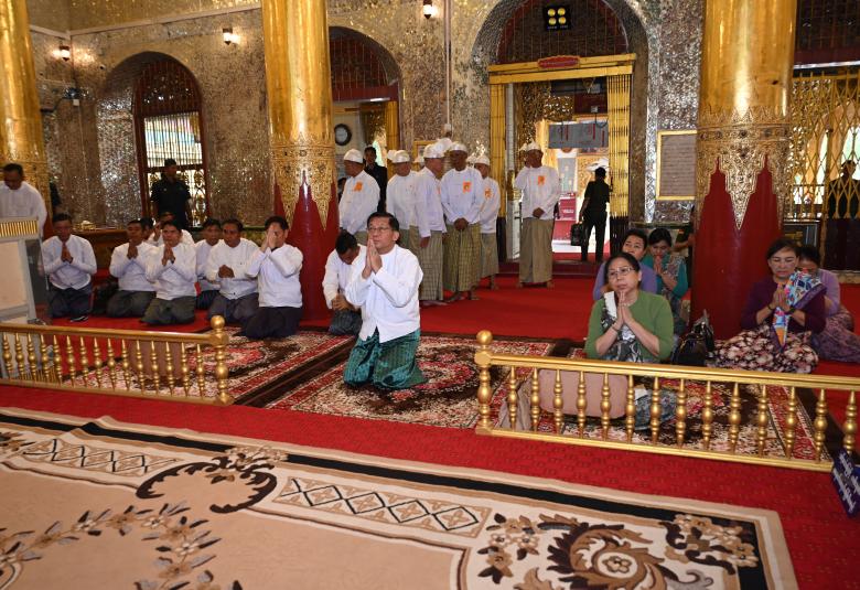The Senior General gave guidance to officials to offer gold foils to the Shwetaungsar Pagoda.