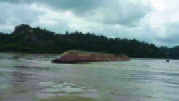 A cargo ship loaded with charcoal from the Htoo Han Thit company capsized on the morning of 15 July in the Chindwin River near Shwekyin Village in Kalewa Township of Sagaing Region.