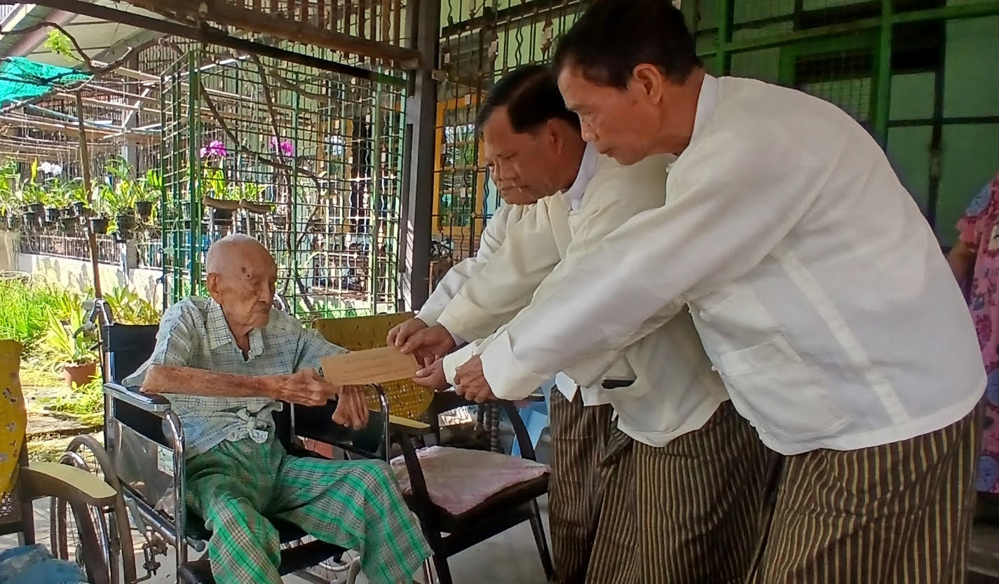The Secretary and officials of the Yangon Region War Veterans Organization provided cash assistance to two centenarian veterans—Major Chit Lwin (Retd.), a member of the Insein Township War Veterans Organization, and Warrant Officer Aung Myint (Retd.), a member of the Latha Township War Veterans Organization—yesterday.