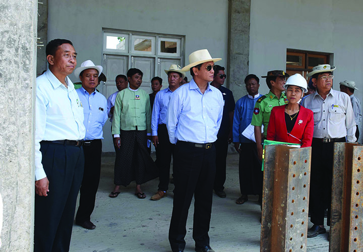 The Vice President next visited the construction site of the indoor stadium in Thantlang Township where Director-General U Myo Hlaing of the Department of Sport and Physical Education explained the benefits of the stadium when it is completed. The Vice President gave instructions and inspected the site.