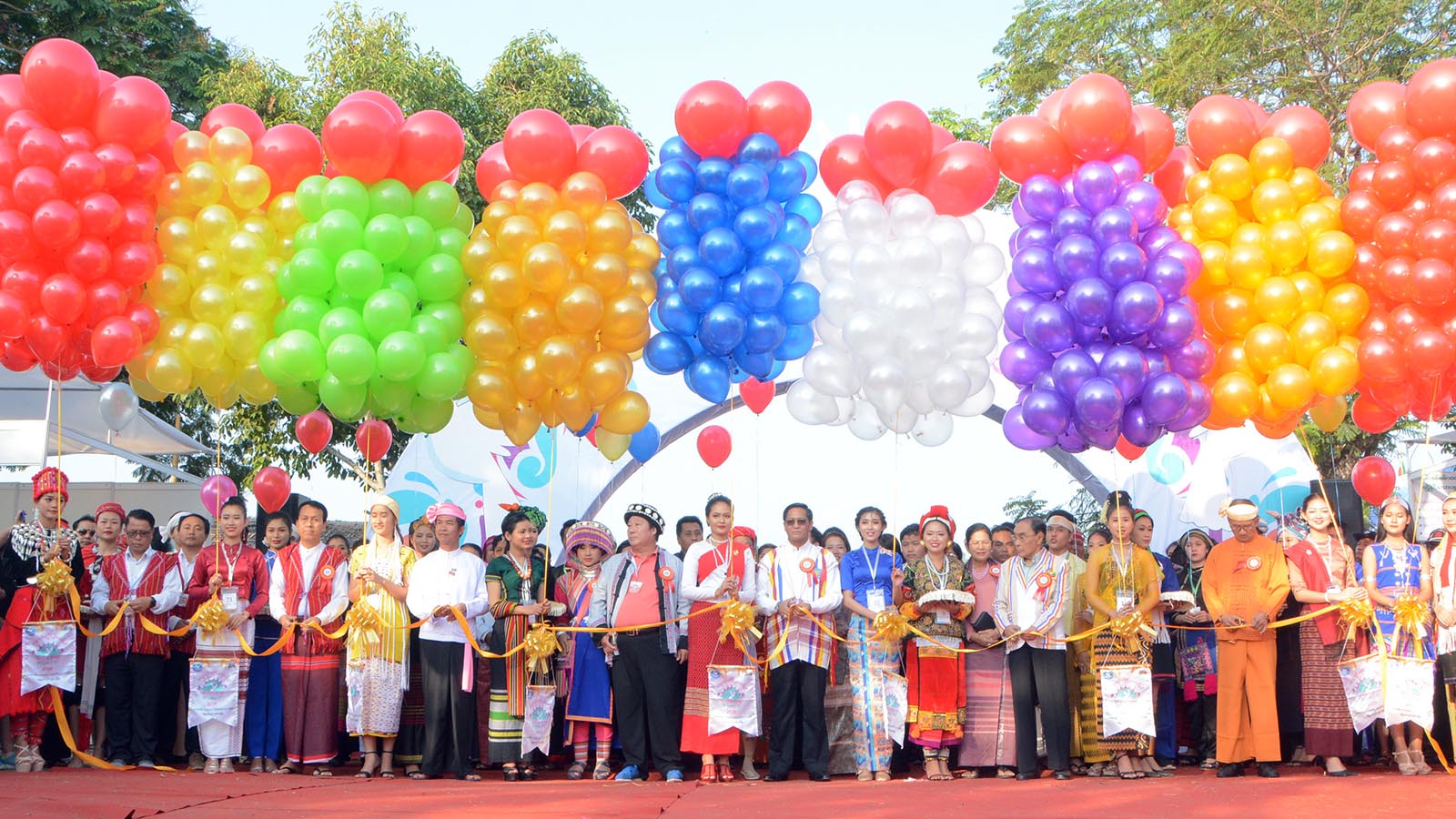 First, Vice President U Henry Van Thio, Union Ministers U Ohn Maung and Nai Thet Lwin, Yangon Region Chief Minister U Phyo Min Thein, Kayah State Chief Minister U L Phaung Sho and persons-in-charge cut the ribbon to open the Myanmar Ethnics Cultural Festival.