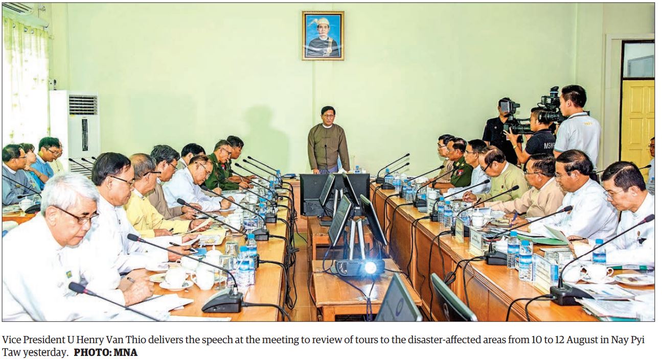 VICE President U Henry Van Thio presided over a meeting yesterday to review the findings during his tours to the disaster-affected areas from 10 to 12 August.