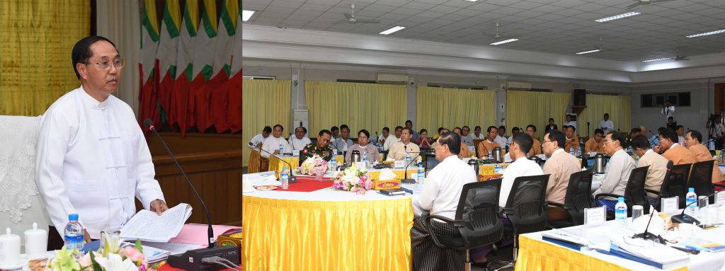 In addressing the meeting the Vice President said the first coordination meeting the MNCCLE was held on 19 February 2018 where 9 decisions were made and all were being implemented. The second coordination meeting was held on 12 December 2018 where 14 decisions were made out of which 12 were implemented and two were still being implemented. Of the two the first was to coordinate and calculate Union Ministerial departments, Nay Pyi Taw Council area, States/Regions government wise funds required to implement work programs and include in fiscal year 2019-2020 expenditures. This was still being done among relevant departments. The second was to include health care sector in the National Work Plan (draft) and it was a matter that would be conducted continuously once works exist. In order to complete these ongoing works there was a requirement to coordinate and setup a time frame, said the Vice President.