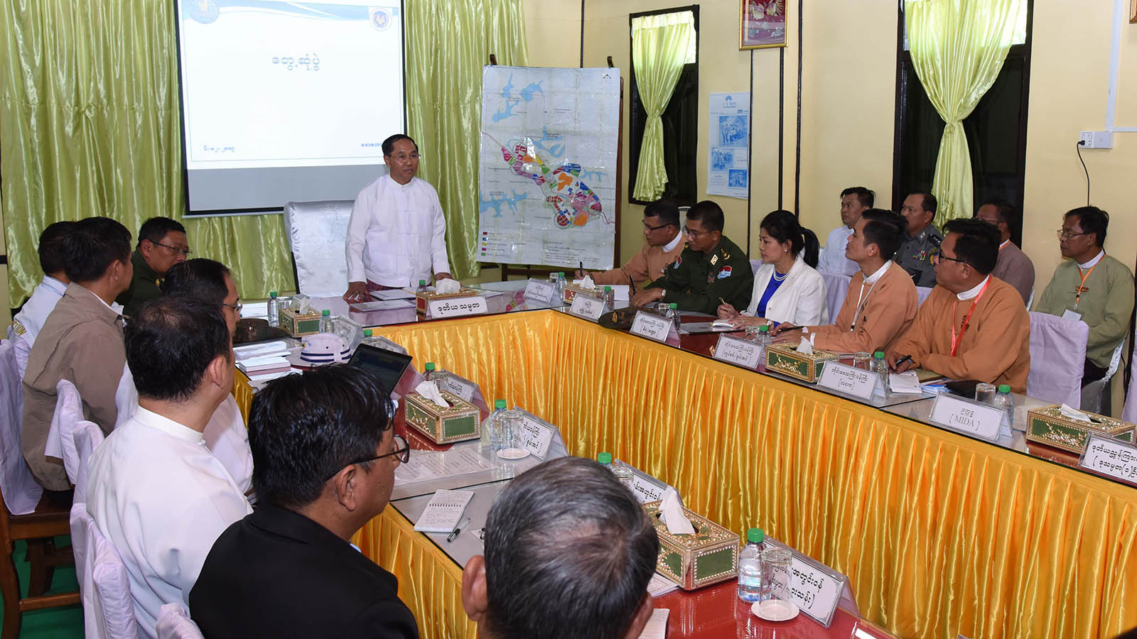 Next, Chief Minister U Myint Maung provided additional explanations and the situation of the trade centre and regional development.