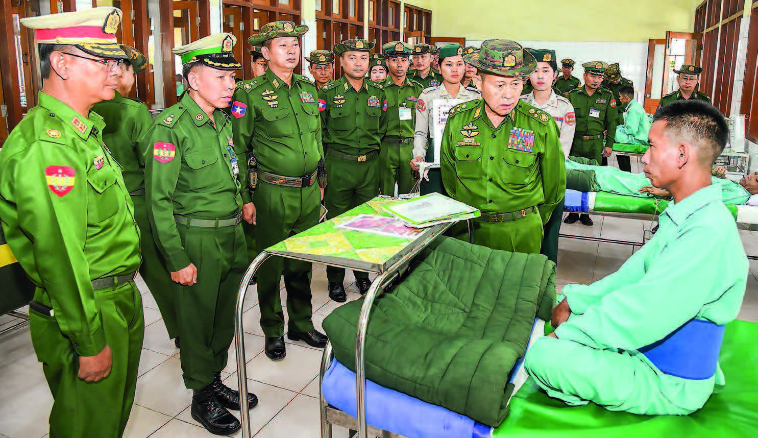 State Administration Council Vice-Chairman Deputy Commander-in-Chief of Defence Services Commander-in-Chief (Army) Vice-Senior General Soe Win, accompanied by senior Tatmadaw officers from the Office of the Commander-in-Chief, the Eastern Command commander and officials, yesterday morning visited the Tatmadaw hospital in Aungban of Shan State (South). He comforted Tatmadaw members and people’s militia (local) troops who were receiving medical treatment.