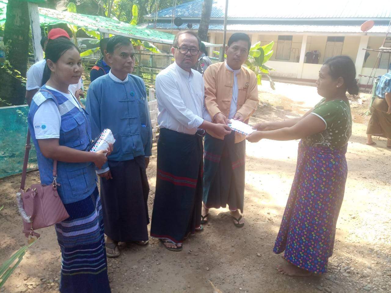 The victims of grenade attack that occurred in Kyondoe Town in Kayuin State at about 8:30 p.m. on 11 November were provided with cash assistance by officials from the Department of Disaster Management under the Ministry of Social Welfare, Relief and Resettlement on 12 November.