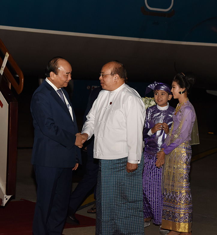 Upon the invitation of President U Win Myint and First Lady Daw Cho Cho, Prime Minister Mr Nguyen Xuan Phuc of the Socialist Republic of Viet Nam arrived on an official visit and landed in Nay Pyi Taw at 7:45 pm yesterday. The Vietnamese Prime Minister was first welcomed by U Min Thein, Director-General of the Protocol Department, and Vietnamese Ambassador Dr Luan Thuy Duong on board his special flight.