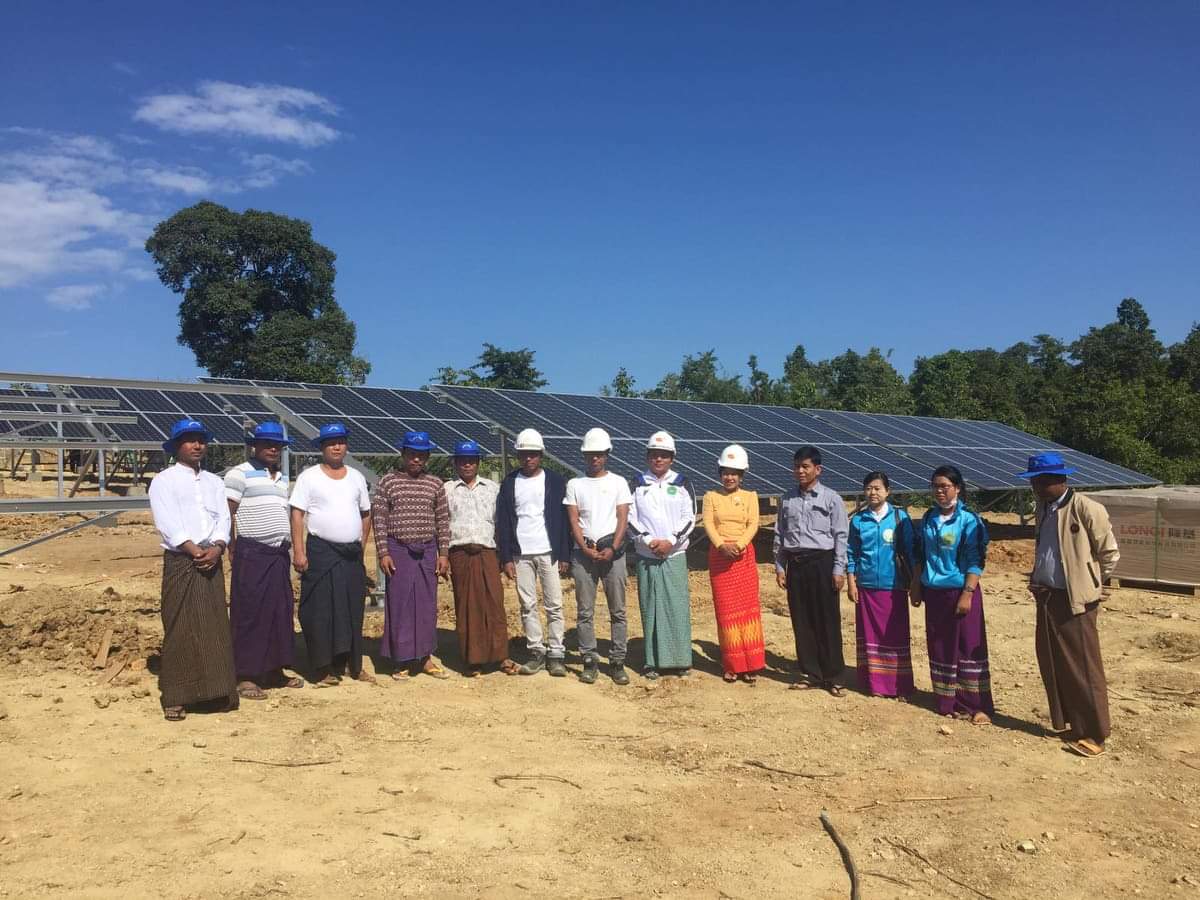 At the respective construction sites, U Kyaw Htoo, engineer in charge of Mango Energy Co. Ltd briefed the team on the construction of solar plant, the installation of lamp posts, wiring in households, the construction of staff housing and tower.—Kyaw Myaing (IPRD)