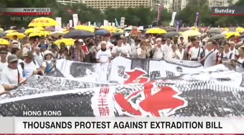Organizers say more than a million people demonstrated on Sunday to protest a bill that would allow suspects to be extradited to mainland China to face trial.