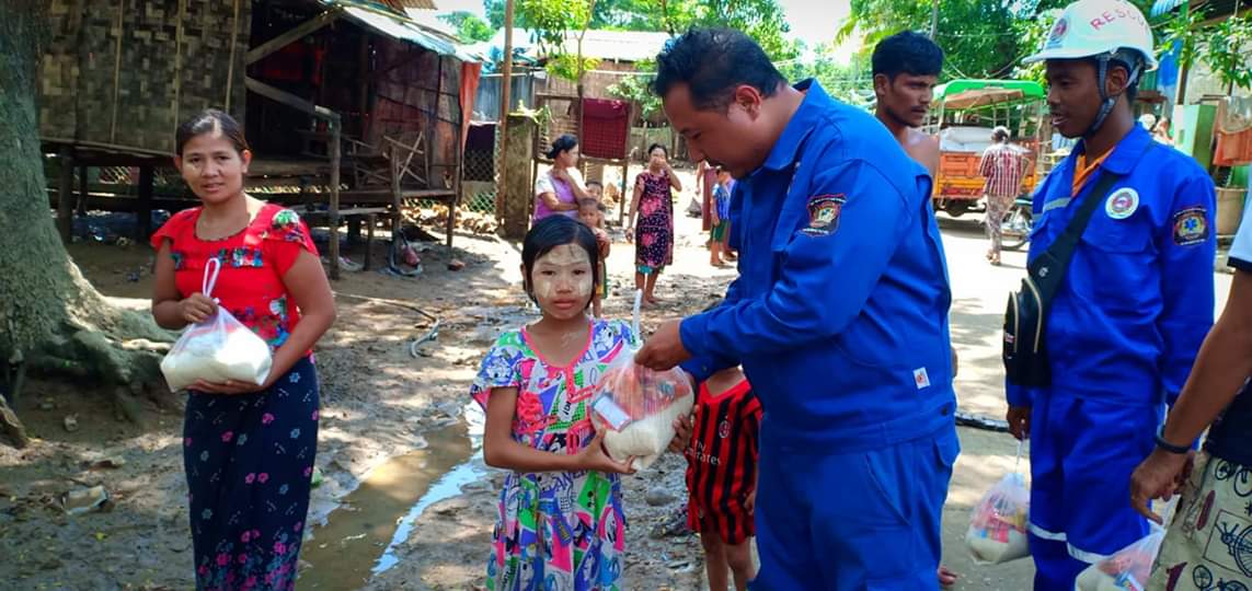 Relief items such as rice and foodstuff were contributed by local people in Thongwa Township for the disaster victims in Bago Township. The philanthropic works were led by U Hein Zaw. They presented relief items to more than 500 flood victims.
