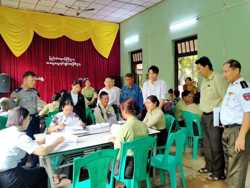 At the Township General Administration Department office in Bilin, the committees examined the e-ID Server data from the Ministry of Immigra­tion and Population, specifical­ly the population register of residents aged 18 and above as of 28 December 2025. The verification process includ­ed on-site cross-checking of residents by ward and village tract and reviewing the Form 66/6 register for residents aged 18 and above. The pro­cess also involved, confirming the inclusion or exclusion of applications submitted dur­ing the first-round voter list announcement using Form 3 and Form 3-A, and reviewing objections filed using Form 4. These inspections were car­ried out to ensure that all voter lists were complete, accurate, and up to date. — Township IPRD/MKKS