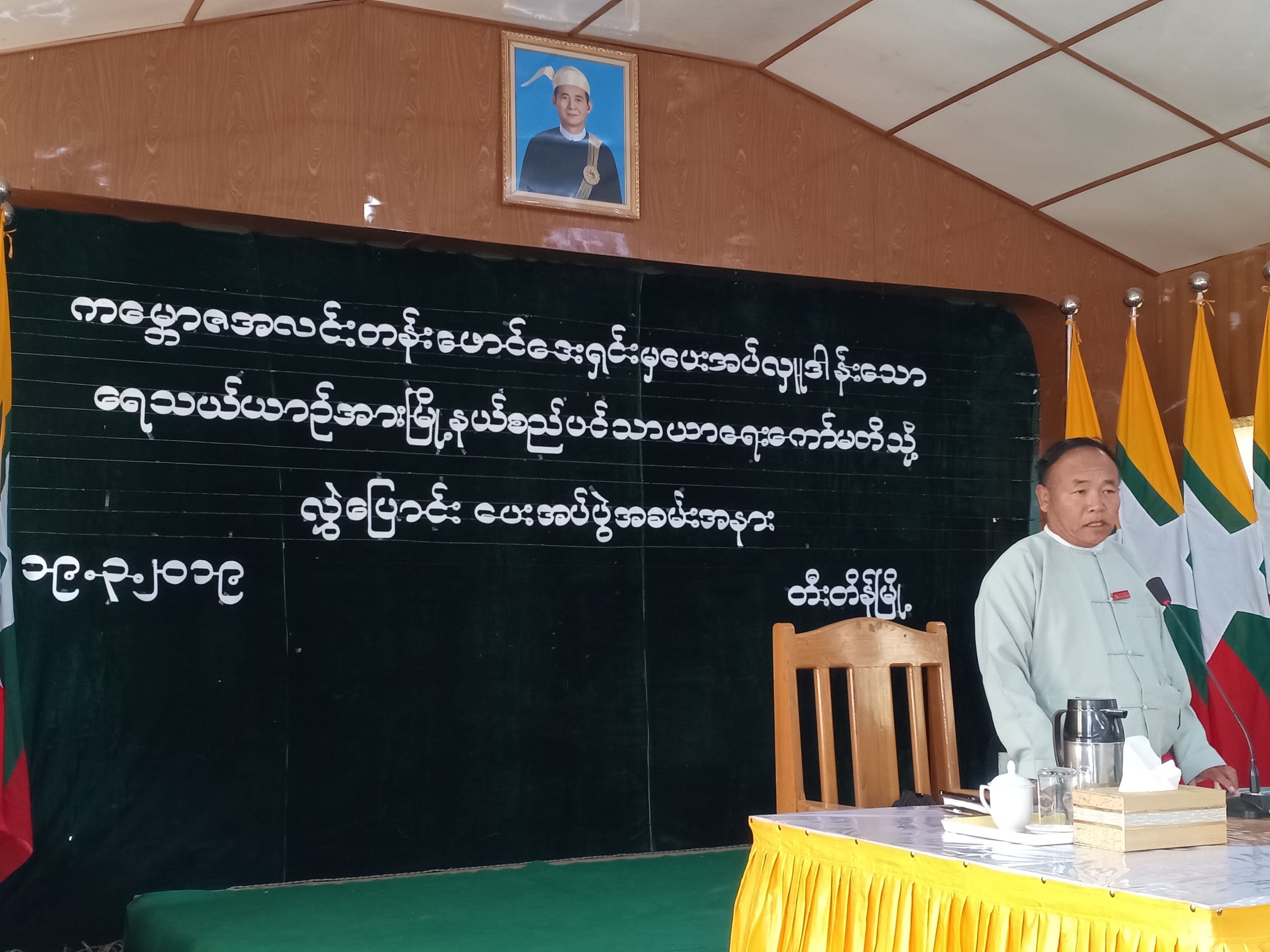 A ceremony to present a water carrying vehicle was held this morning at the meeting hall of Tedim Township General Administration, Chin State.