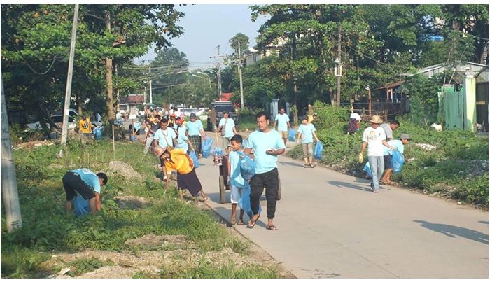 A group of people carried out a weekly collective garbage clearance campaign along Thakhin Pho Hla Kyi Road in South Okkalapa Township, eastern district, Yangon Region this morning with the aim of beautifying the whole township and keeping it clean.