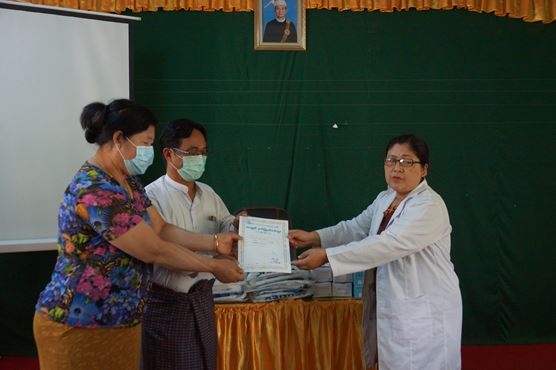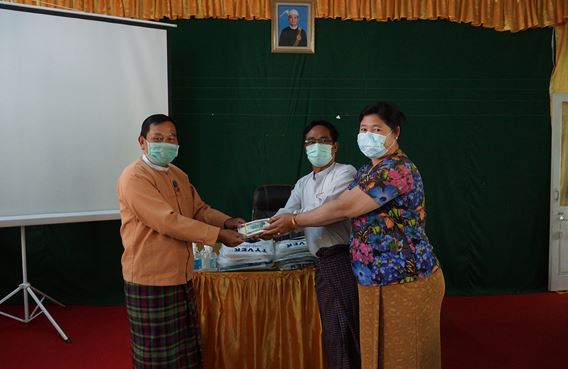 A ceremony to provide financial assistance and health gears for the township commttee on Covid-19 prevention, control and treatment was held at the meeting room of Mohnin district Public Health Department in the town of Mohnyin, Mohnyin district, kachin state yesterday morning.