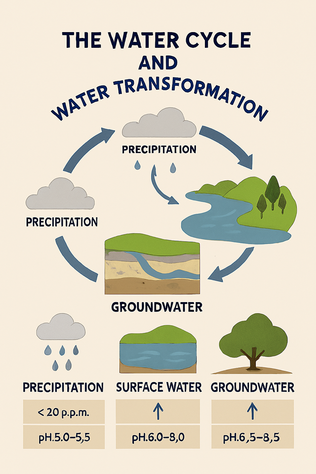 AN IN-DEPTH Summary of Water Sources, Chemistry, and Their Importance for Brewing. Understanding where water comes from and how it changes as it moves through the environment is essential for brewers. Water is not a static or uniform substance; its composition is constantly altered by natural processes and human activity. This text explains how water travels through the hydrologic (water) cycle, how it acquires various chemical constituents along the way, and why these changes matter so much in brewing. Since water is the primary ingredient in beer, its chemistry directly affects brewing performance, flavour, and quality.