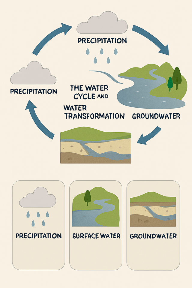 Eventually, groundwater returns to the surface through wells, springs, rivers, and streams. At any stage, water may also evaporate back into the atmosphere, completing the cycle. Each phase of this journey alters water chemistry, making no two water sources exactly alike.