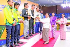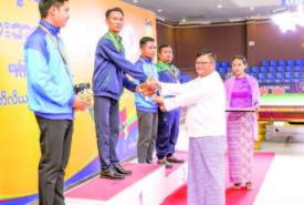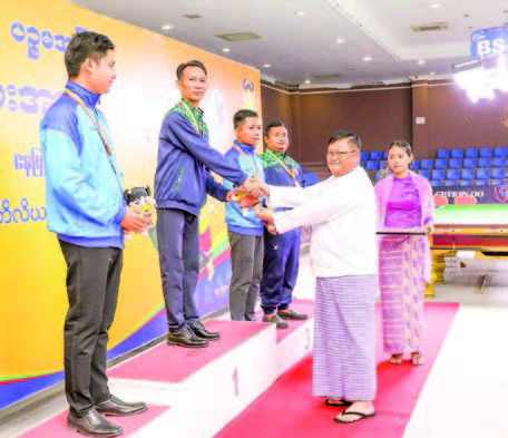 Afterwards, the award­ing ceremony for the bil­liards-snooker event was held at Wunna Theikdhi Billiards Hall. Among the spectators were State Administration Council Members U Yan Kyaw and U Shwe Kyein, Ayeyawady Region Social Affairs Minister U Khin Maung Kyi and Union Minister U Ko Ko Lwin. They presented awards to the win­ners from Ayeyawady, Mag­way, Yangon and Nay Pyi Taw teams for the Billiards Single event, Ayeyawady, Mandalay, Yangon and Kachin teams for the Billiards Double event, Kay­in State and Magway Region teams for the Snooker 15 Red Single event, Shan, Yangon, Magway and Kachin teams for the Snooker 15 Red Double event.
