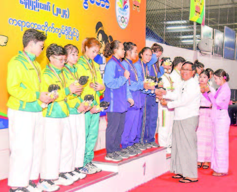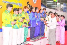 An awarding ceremony for the Karate competition was continued at the Wunna Theikdhi Karate Court. Among the spectators were Myan­mar Karate Federation Chair U Thant Zin, Yangon Region Social Affairs Minister U Htay Aung, Rakhine State Social Af­fairs Minister U Thet Tun and Sagaing Region Social Affairs Minister U Nyunt Win Aung. They presented awards to the winners from Magway, Manda­lay, Kayah and Rakhine teams for women’s 61-kilogramme event, Yangon, Shan, Man­dalay and Sagaing for men’s 55-kilogramme event, Sagaing, Yangon, Ayeyawady and Shan for men’s 75-kilogramme event.