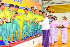 An awarding ceremony for the U-21 men’s football final was then held at the Shwekyap­in sports ground. Officials from the Myanmar Football Feder­ation, Nay Pyi Taw Council members and Deputy Minister U Soe Kyi attended the event. They presented awards to the winner Team Nay Pyi Taw, first runners-up Team Mandalay and second runners-up Team Yangon.