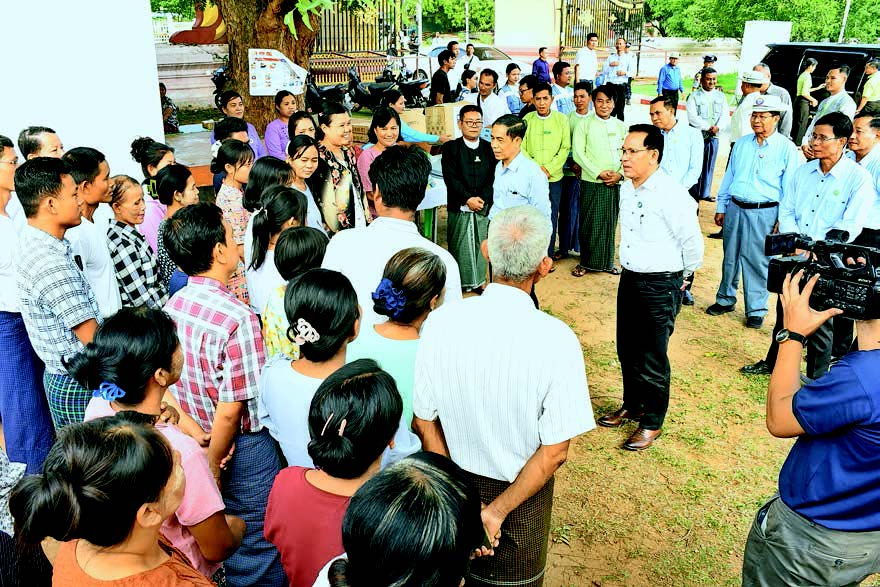 At noon, the two Union ministers met with the officials at Sagaing District Administrative Office, and Union Minister U Ko Ko Hlaing highlighted the important role of cooperation among governmental organizations, entrepreneurs, social and altruistic organizations and international assistance, and the need to conduct proper measures to remedy the silver businesses.