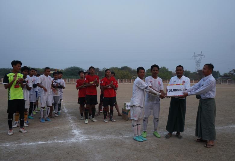 First, the chairman of the township football association U Tun Naing explained the purpose of competition and an official from the Sports and Physical Education Department clarified sport development activities in the township. Next, the Amyotha Hluttaw Representative U Soe Min Htet, Township Administrator U Myo Tint and the head of township police force Police Major Kyaw Myint Shwe presented cash, awards and individual prizes to winning teams and players.