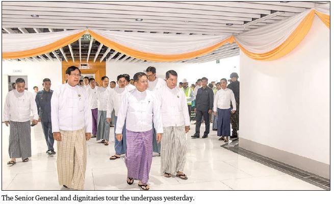 CHAIRMAN of the State Administration Council Prime Minister Senior General Min Aung Hlaing yesterday morning attended the ceremony to inaugurate an underpass, which is the second facility of its kind in Myanmar, on U Wizara Road between the western archway of Shwedagon Pagoda and the People’s Park in Dagon Township, Yangon Region.